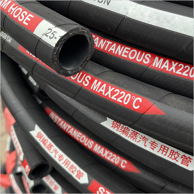 公司生產的蒸汽膠管,材質是三元乙丙(EPDM)橡膠,可以耐溫180°C,瞬間溫度可以達到220°C,是公司銷量非常好的一款橡膠管,每天日銷能達到5000米以上,這款蒸汽膠管具有優良的耐熱耐高溫,耐酸堿,耐老化性能;承受壓力高,使用柔軟,常用型號有19mm、25mm、32mm、51mm。